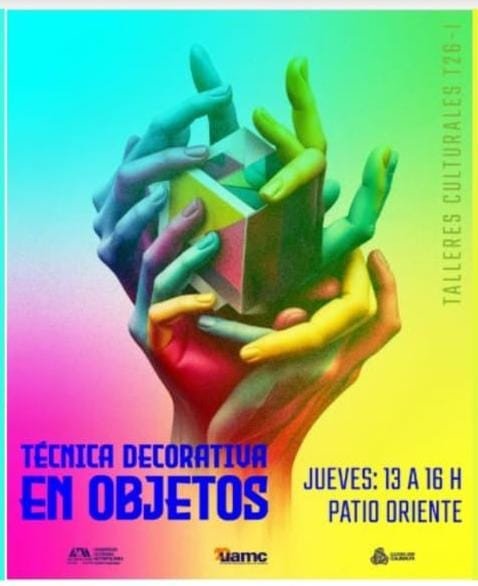¡Convierte objetos en arte! Únete al taller gratuito de la Lic. Jimena Gomez en la UAM Cuajimalpa. Aprende composición, uso de acrílicos y servilletas alemanas para dar vida a piezas en desuso. 8 clases abiertas a la comunidad (jueves 13:00 hrs) donde el único requisito es tu creatividad.